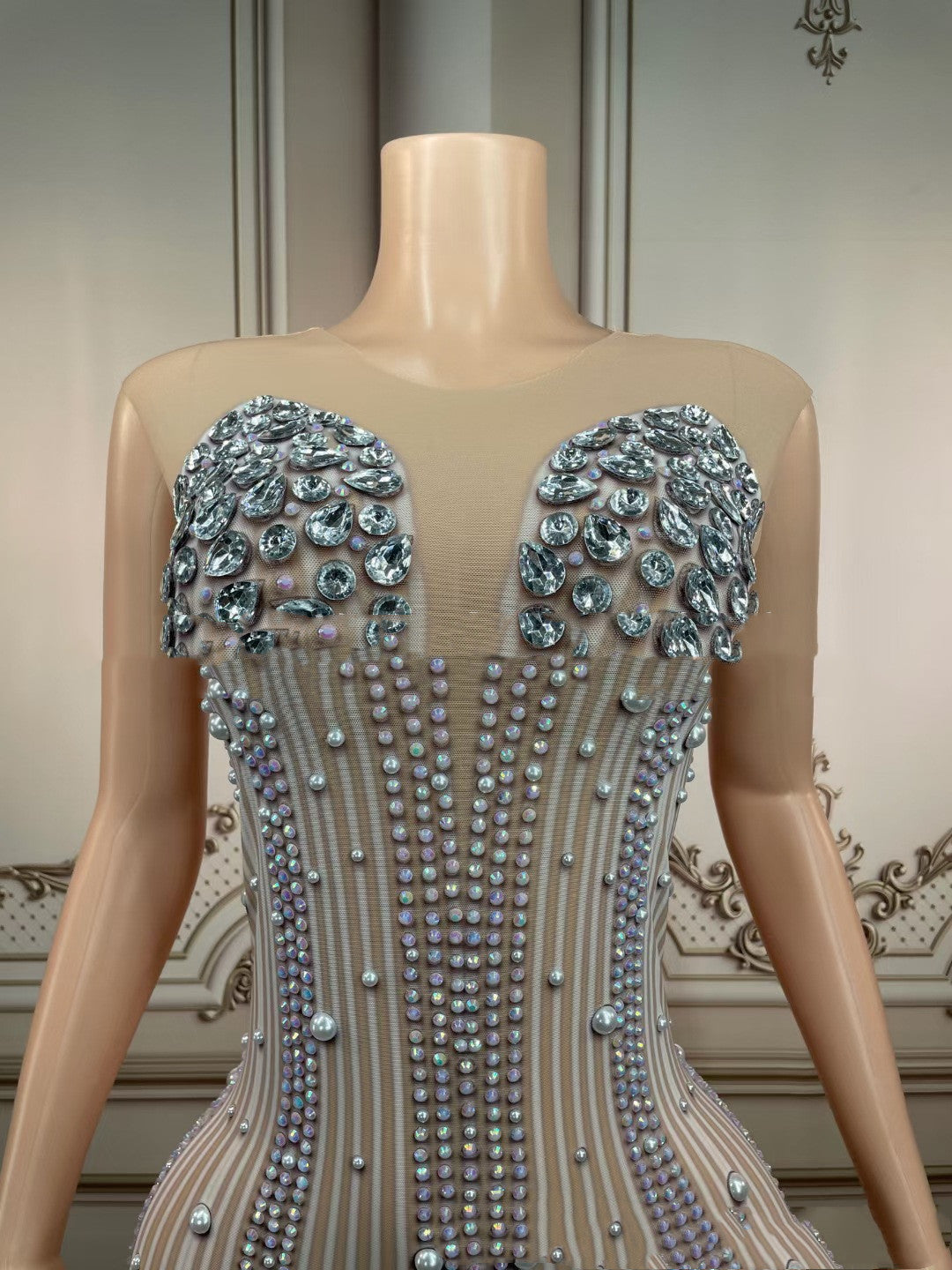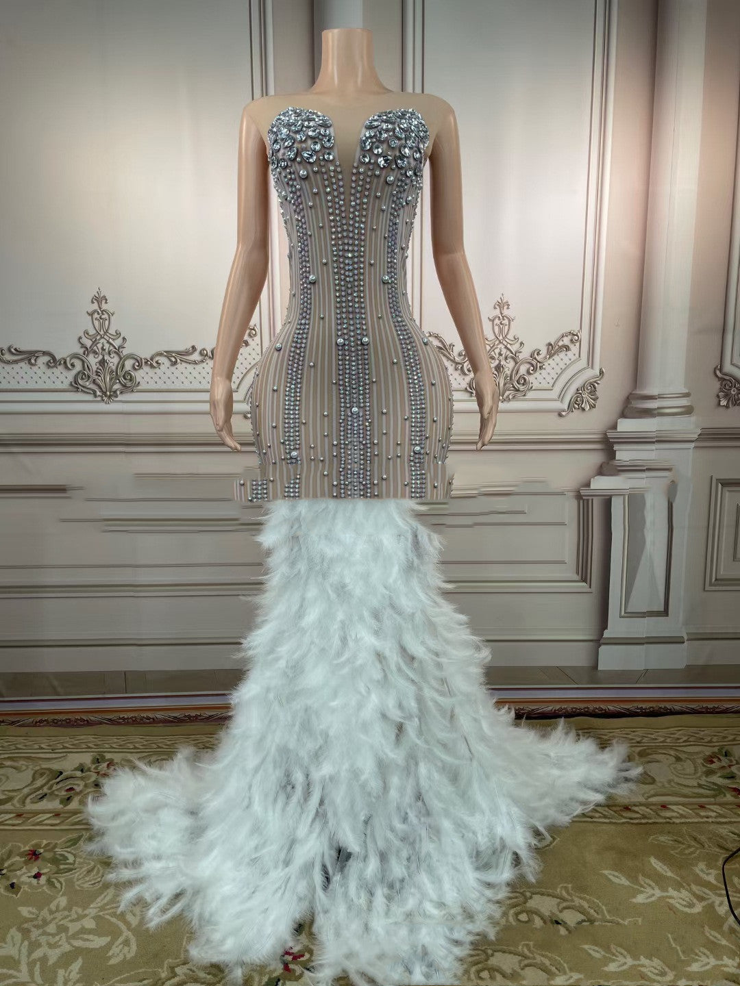 Full Diamond Feather Mesh Wrap Hip Dress -